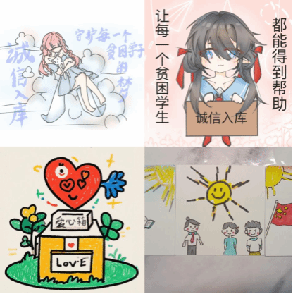 学院组织学生积极参加“诚信感恩励志”资助政策宣传作品活动,开展资助作品征集活动,学生执笔作画,画出自己在学习生活中感受到的美好,深化资助育人的内涵。同时,各班级开展感恩励志教育主题班会,弘扬大学生知恩感恩报恩的优秀道德品质,践行社会主义核心价值观,构建大学生感恩教育体系,把感恩教育作为全校学生思想道德建设的切入点和突破点,激励广大受助学生知感恩、奋发自强,营造感恩向善、自立自强的校园氛围。