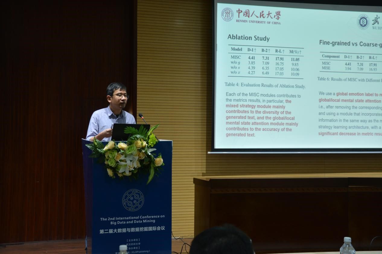 会议包含4个精彩的主旨报告与2个特邀报告。在主旨报告环节,中国人民大学严睿副教授做题为“Learning Towards LLM-based Conversational Agents with Role-Playing”的报告,IEEE Fellow、华中科技大学伍冬睿教授做了题为“Efficient Optimization of Fuzzy Systems”的报告,深圳大学黄哲学教授做了题为“Enabling big data analytics across multi-clouddata centers: a non-Map Reduce approach”的报告,武汉理工大学李琳教授做了“Computational Social Science on People and Society”的报告。
