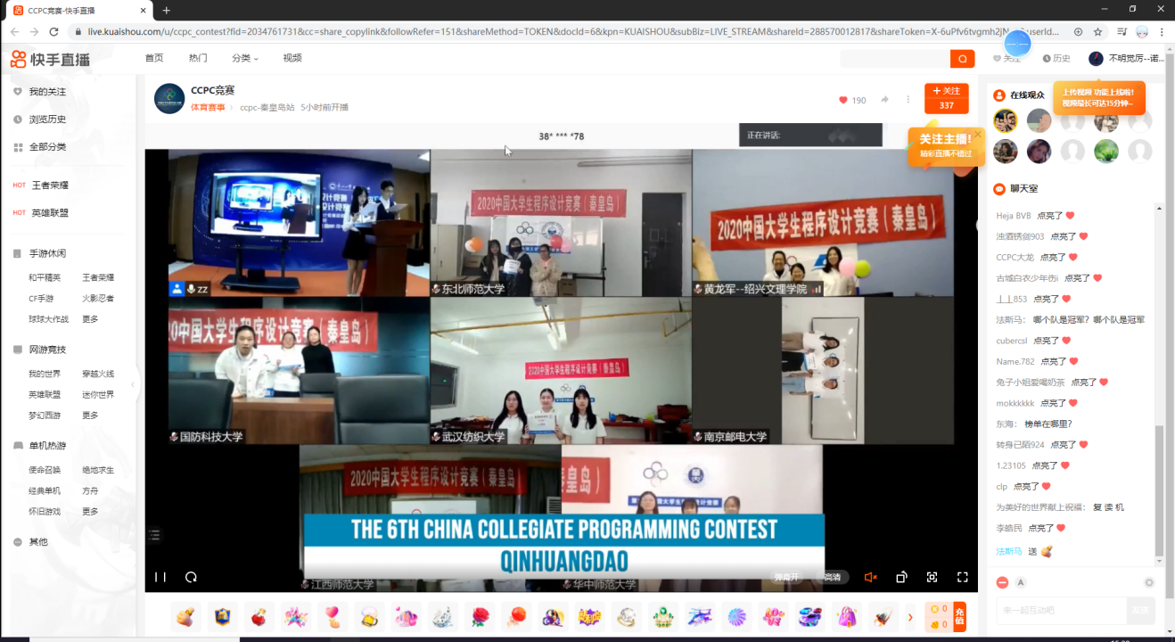2020年10月18日,第六届中国大学生程序设计竞赛(秦皇岛)在线上举行,本次竞赛通过网络赛激烈选拔,共有来自清华大学、北京大学等在内的全国226所高校的418支队伍,共1254名程序设计精英参加此次比赛。