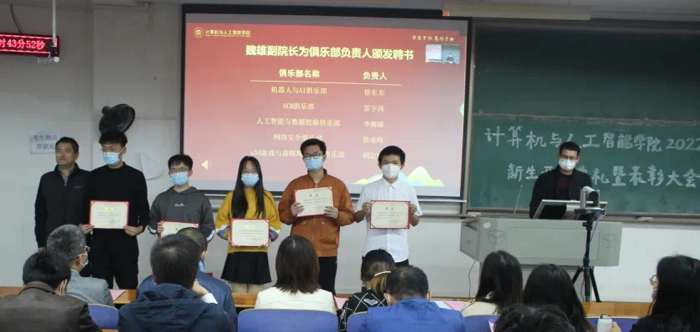 会上,学院领导肯定了“1024工作室—课外科技俱乐部”自成立以来所取得的成绩,并由魏雄副院长为新任俱乐部负责人颁发聘书。此次受聘的学生负责人分别是机器人俱乐部负责人徐东东,ACM俱乐部负责人雷宇涛,数据挖掘俱乐部负责人李娜娜,网络安全俱乐部负责人徐凌峰,u3d俱乐部负责人胡宗旭。