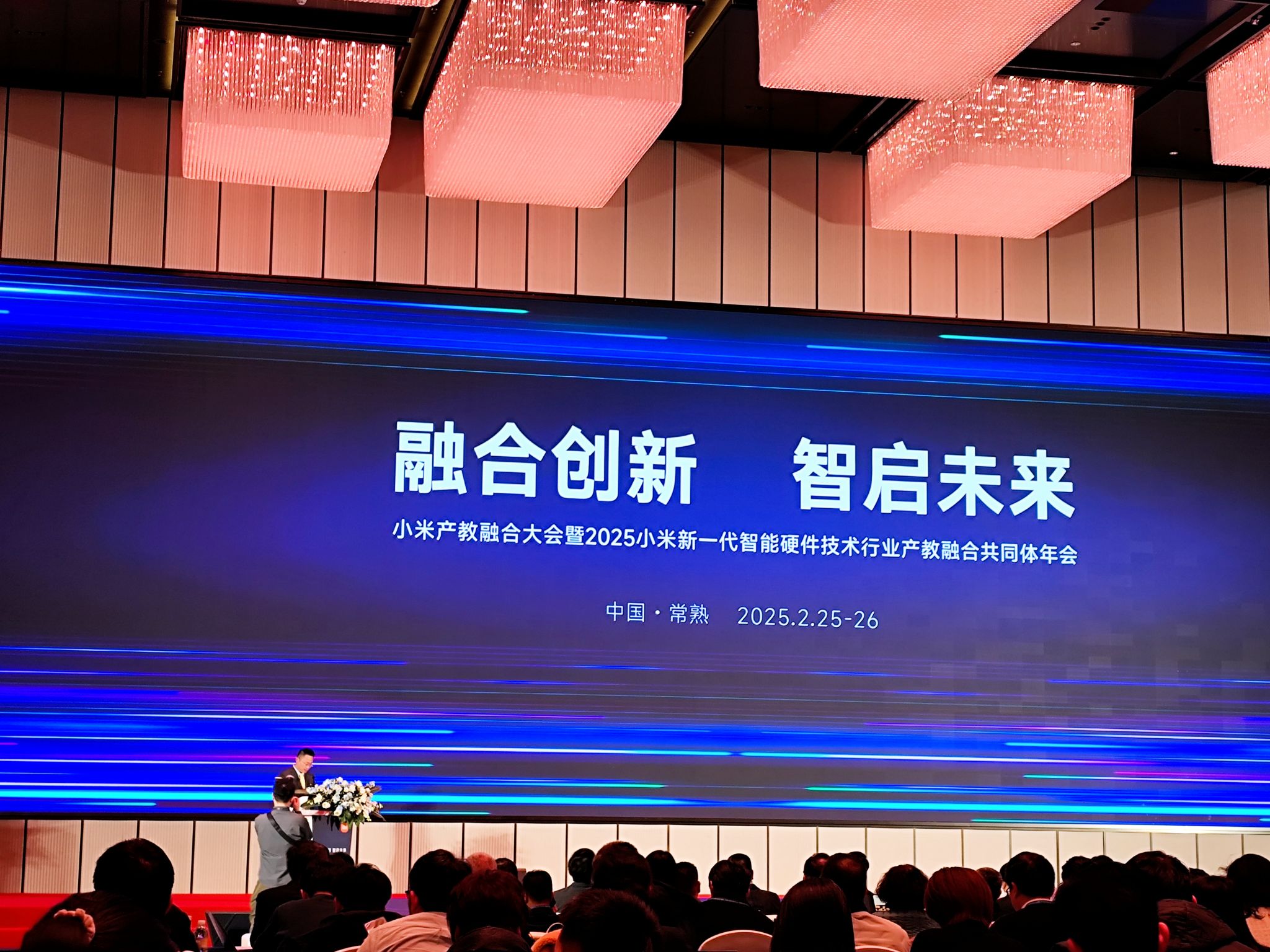 2025年2月24日至26日,备受瞩目的“融合创新,智启未来:2025小米新一代智能硬件技术行业产教融合共同体年会”在江苏常熟市隆重举行。我校开云kaiyun体育官方网站院长胡新荣、产学研合作办公室主任刘军平以及物联网教研室主任丁磊代表学校受邀参加了此次盛会。本次年会汇聚了来自政府、企业、高校和科研机构等众多单位的代表,共同探讨新一代智能硬件技术行业产教融合的发展方向与合作机遇。会议期间,各位领导和专家发表了精彩的致辞和主题演讲,为产教融合的深入推进提供了宝贵的思想和经验。