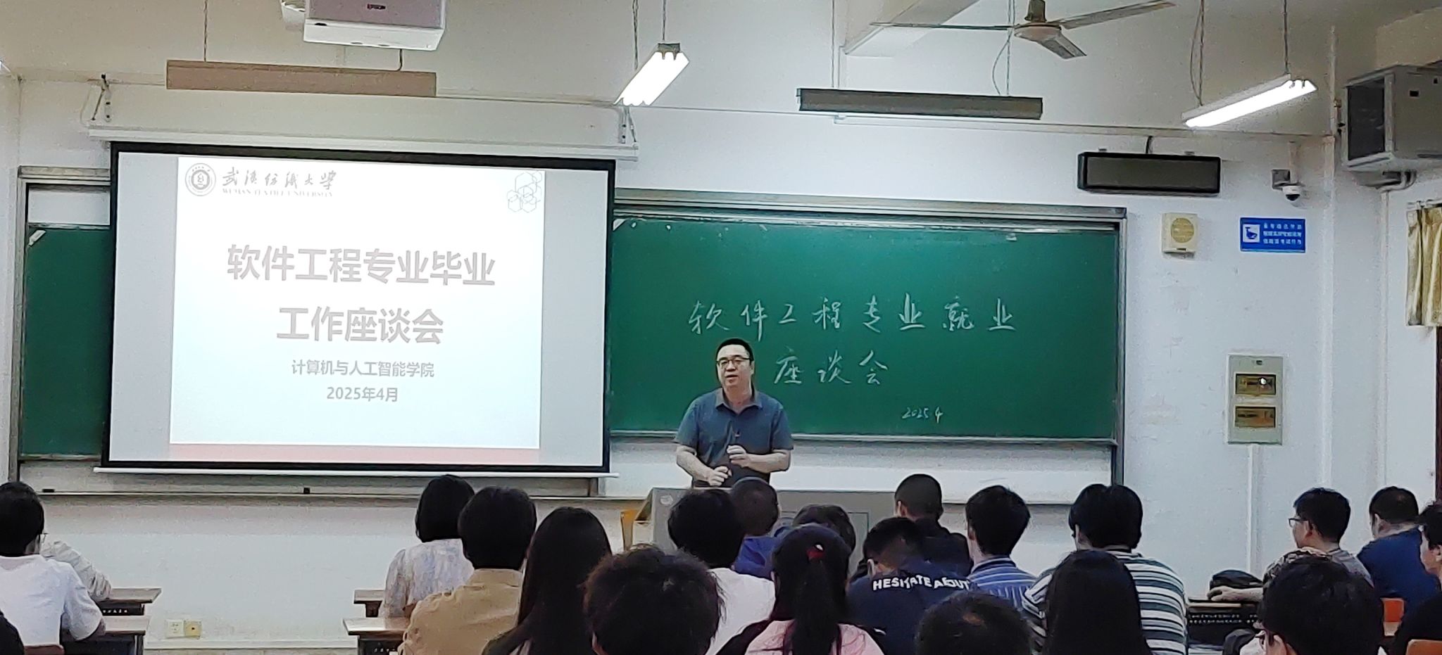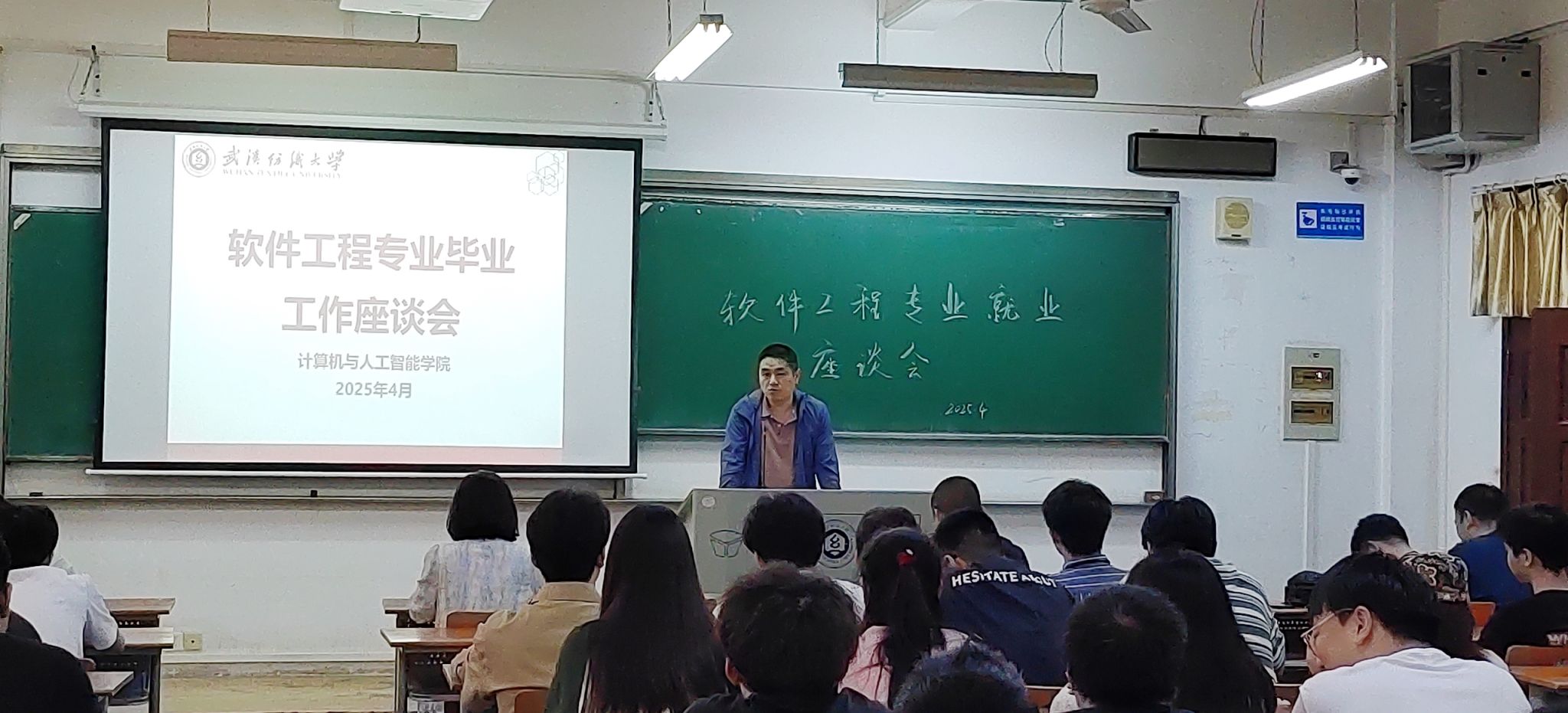 叶鹏表示,软件工程专业学子无论是在校内还是校外,都代表着武汉纺织大学的形象,肩负着学校荣誉,希望同学们能严于律己。他也建议同学们遇到问题多与本科生导师谈心交流。同时,他着重提醒同学们注意毕业论文时间节点,确保按时按质完成。还提到就业情况不太理想的同学能在剩下不到两个月的时间里,抓紧落实就业工作,这不仅是对自己负责,也是对学校负责。